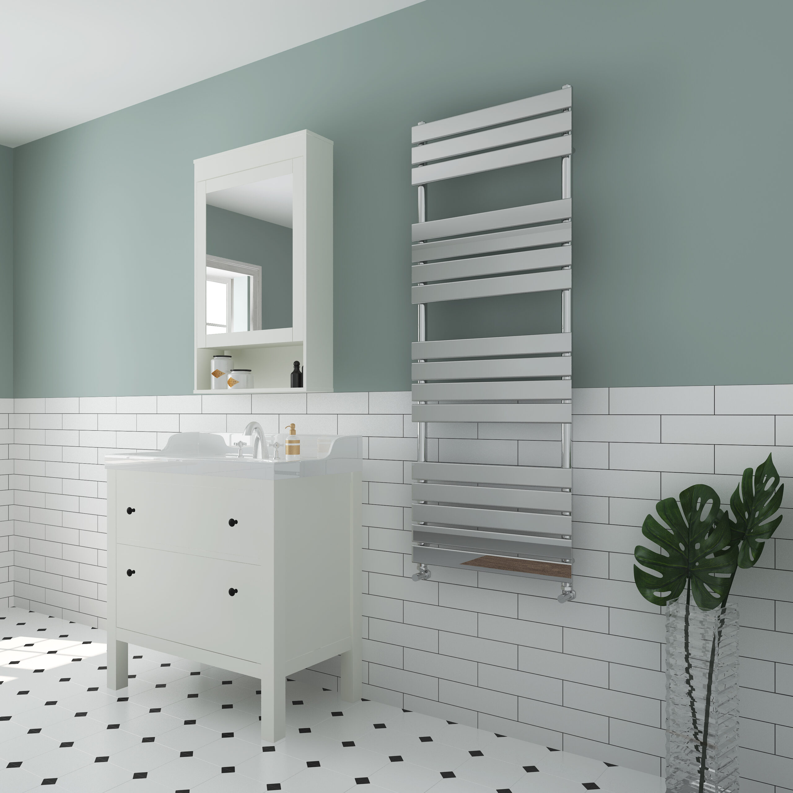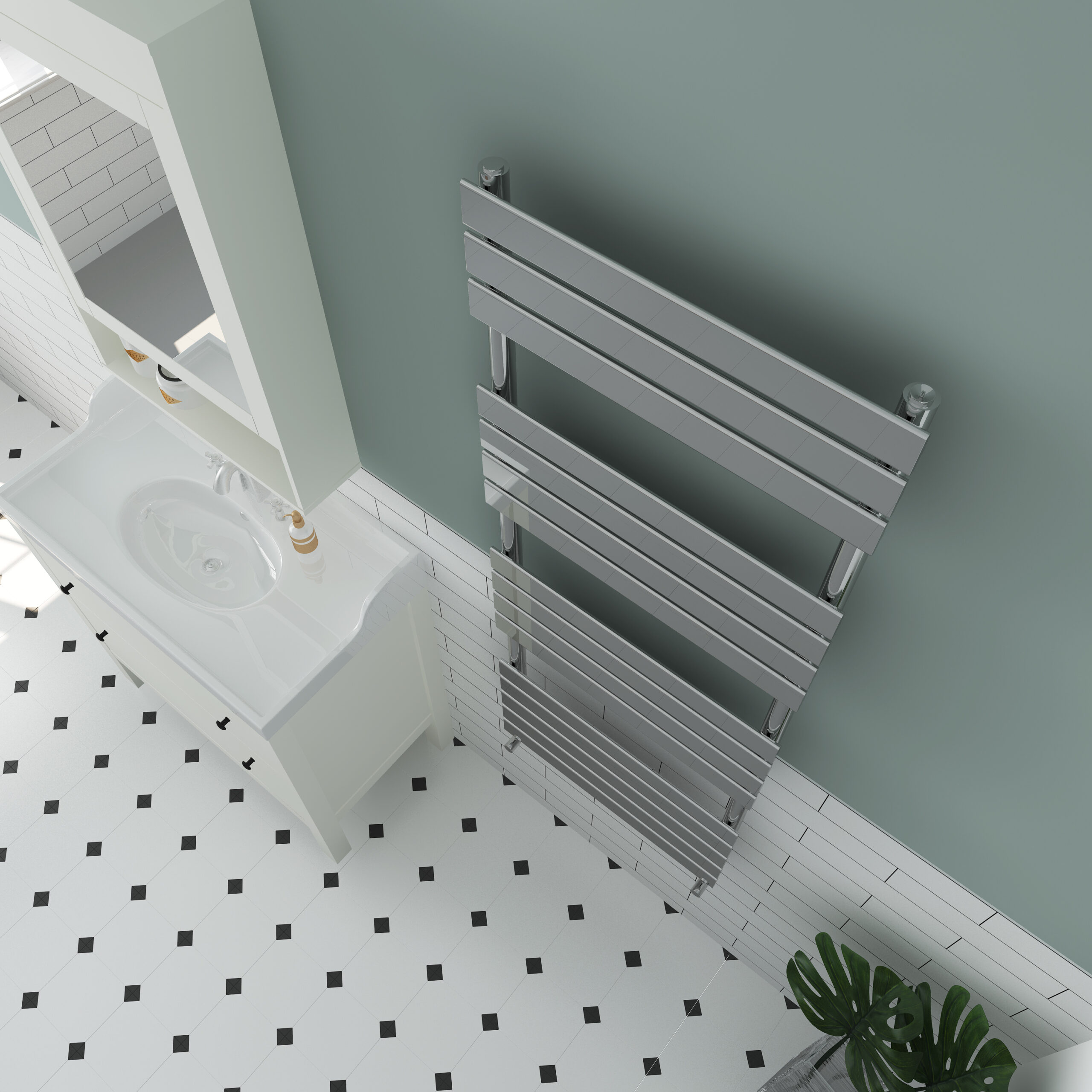 The Farah Designer Towel Radiator combines modern design with superior performance. Hand-crafted with sleek polished panels, this chrome radiator offers exceptional heat output, creating a cosy environment in your bathroom or living space. Built from durable 1.5mm steel, this flat panel radiator delivers high-efficiency heating while complementing your bathroom’s contemporary design.